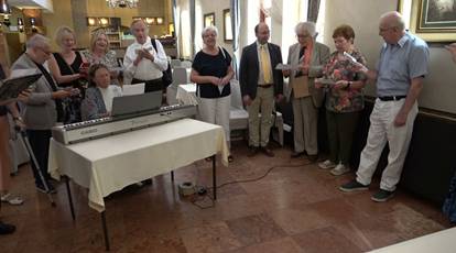 Károly a köszöntésére született dalt hallgatja